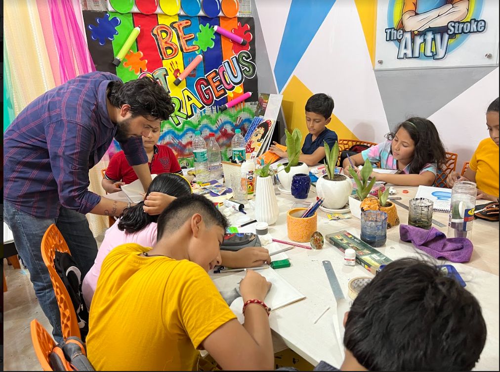 The Arty Stroke offer drawing and craft lessons to all the age groups, various water colour techniques, doodle art, sketches, various charcoal pencil works, acrylic/oil painting, and many others. Currently 50+ students attend our class both online & offline. These Classes are Instructed By Himanshu Pandey,a specialist in his field and an incredible artist.